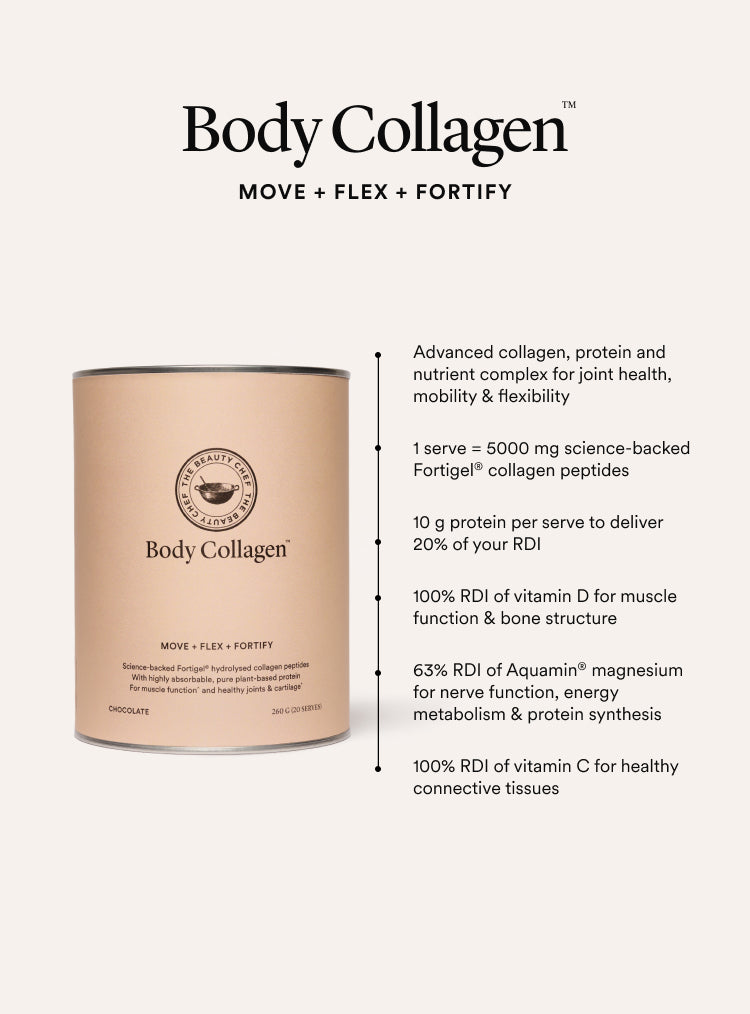 Body holding you back? Find freedom of movement with Body Collagen™. This fortifying collagen, protein and nutrient complex harnesses Fortigel® a highly researched form of type ll collagen peptides - scienfically backed to support healthy joints, cartilage and ligaments. Whether you're highly active or finding movement more challenging, reach for this versatile, gut-friendly formula to support your mobility, flexibility, muscle function and to keep your body moving freely.