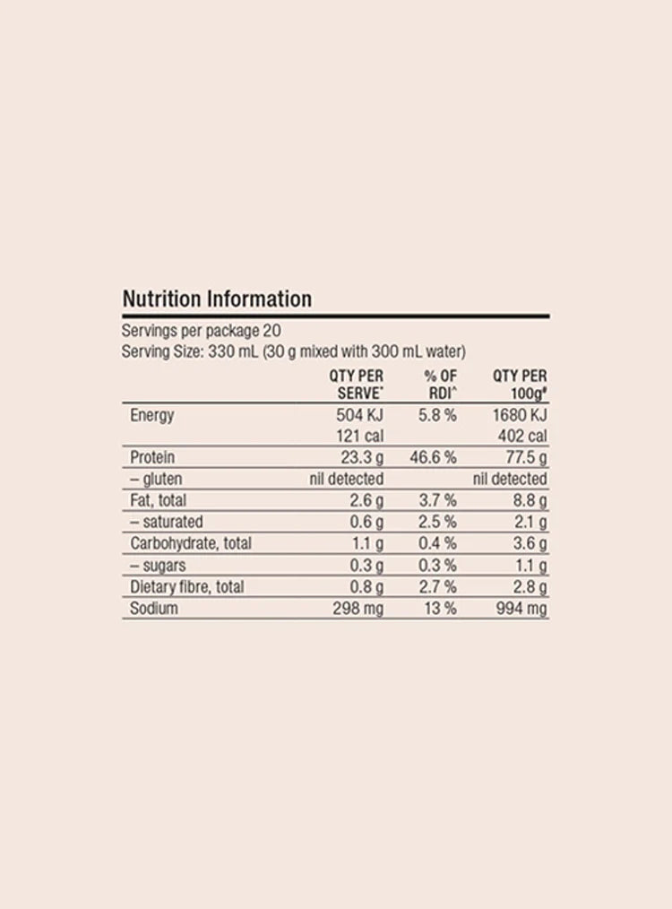 Supports the growth & maintenance of healthy muscles. Each serve contains 23g of protein to deliver over 46% of your daily protein requirements, to tone and build lean muscle mass, support tissue recovery and repair, as well as bone health.