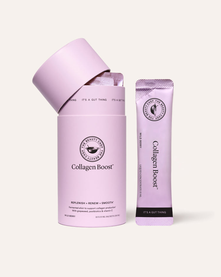 Mix 1 x sachet (15 mL) in 200 mL of water or your favourite drink and consume immediately. 1–2 serves per day. For optimal results, Collagen Boost™ should be consumed daily in chilled or room temperature beverages and can be taken with any other Beauty Chef product.