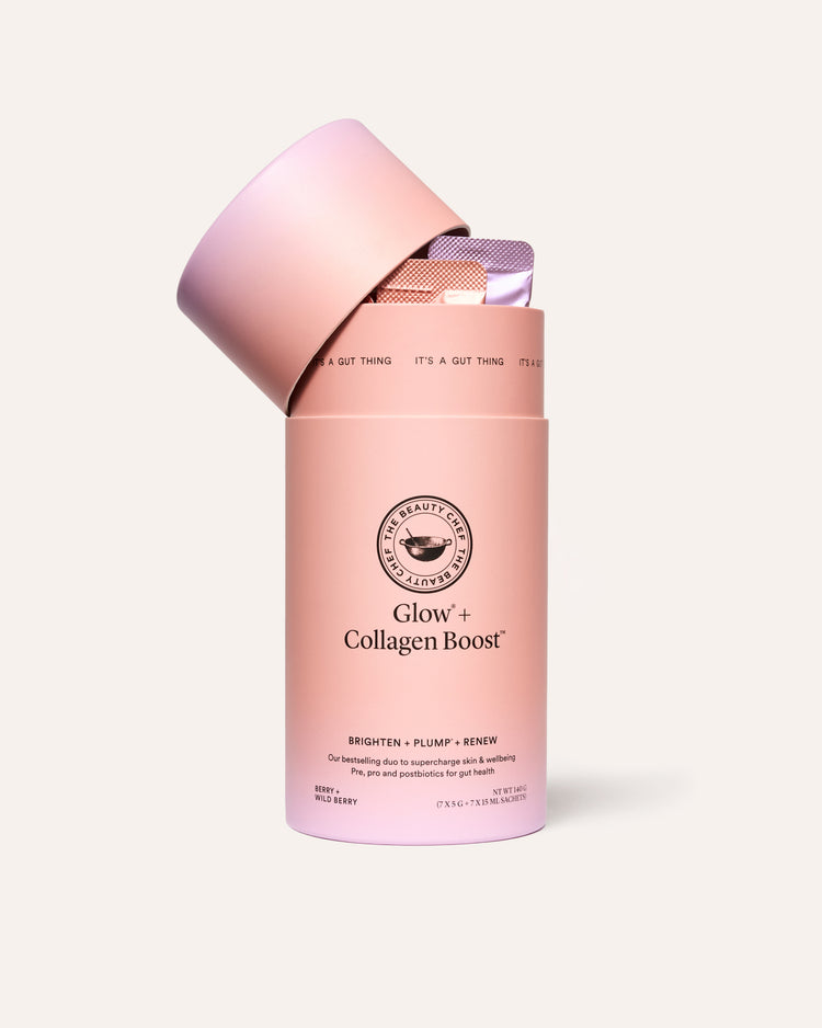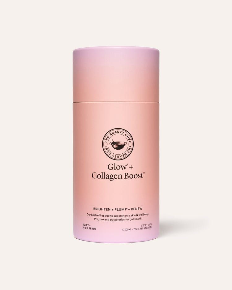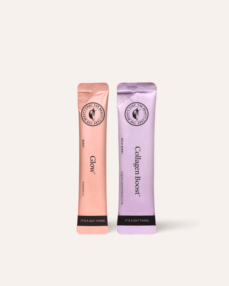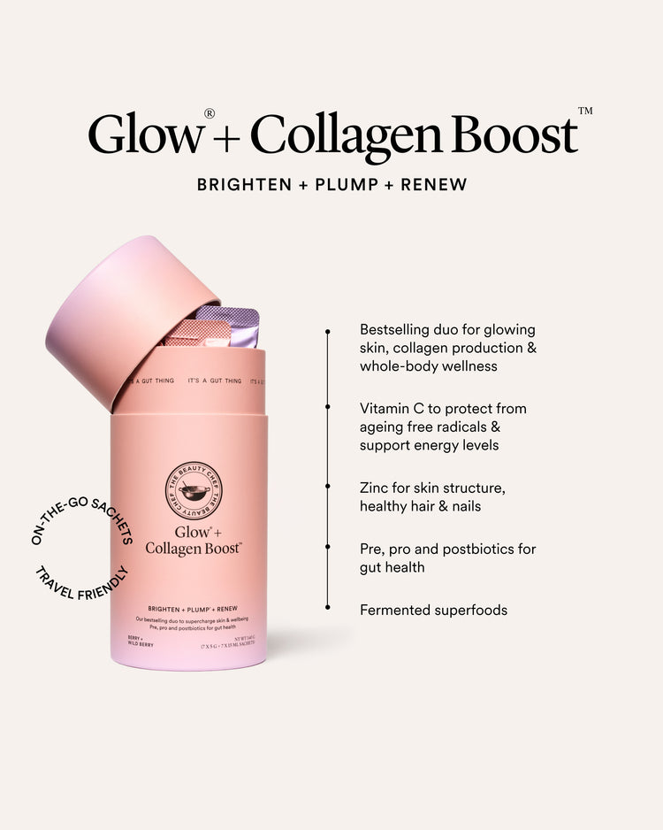 Glow® contains 200% of your RDI of vitamin C to supercharge collagen production and protect from ageing free radicals, alongside 20% of your RDI of provitamin A to boost cellular turnover.