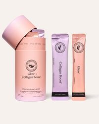 Both Glow® and Collagen Boost™ contain vitamin C to supercharge collagen production and for the normal function of skin, while zinc contributes to normal skin structure and the maintenance of normal hair and nails.