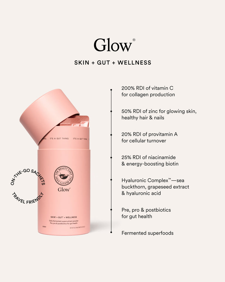 Mix 1 x sachet (5 g) in 200 mL of water or your favourite drink. For optimal results, Glow® should be consumed daily in chilled or room temperature beverages and can be taken with any other Beauty Chef product.