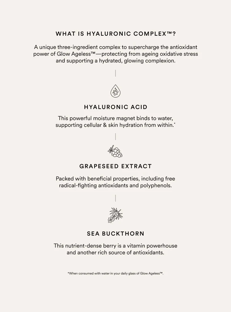 Ready to dial up your glow? Experience our award-winning inner beauty powder for people 50+ for radiant skin, healthy hair and nails, as well as energy, gut, bone & immune health. Now supercharged with our exclusive Hyaluronic Complex™—an antioxidant-rich blend of sea buckthorn, grapeseed extract & hyaluronic acid to deliver your glowiest results yet.
