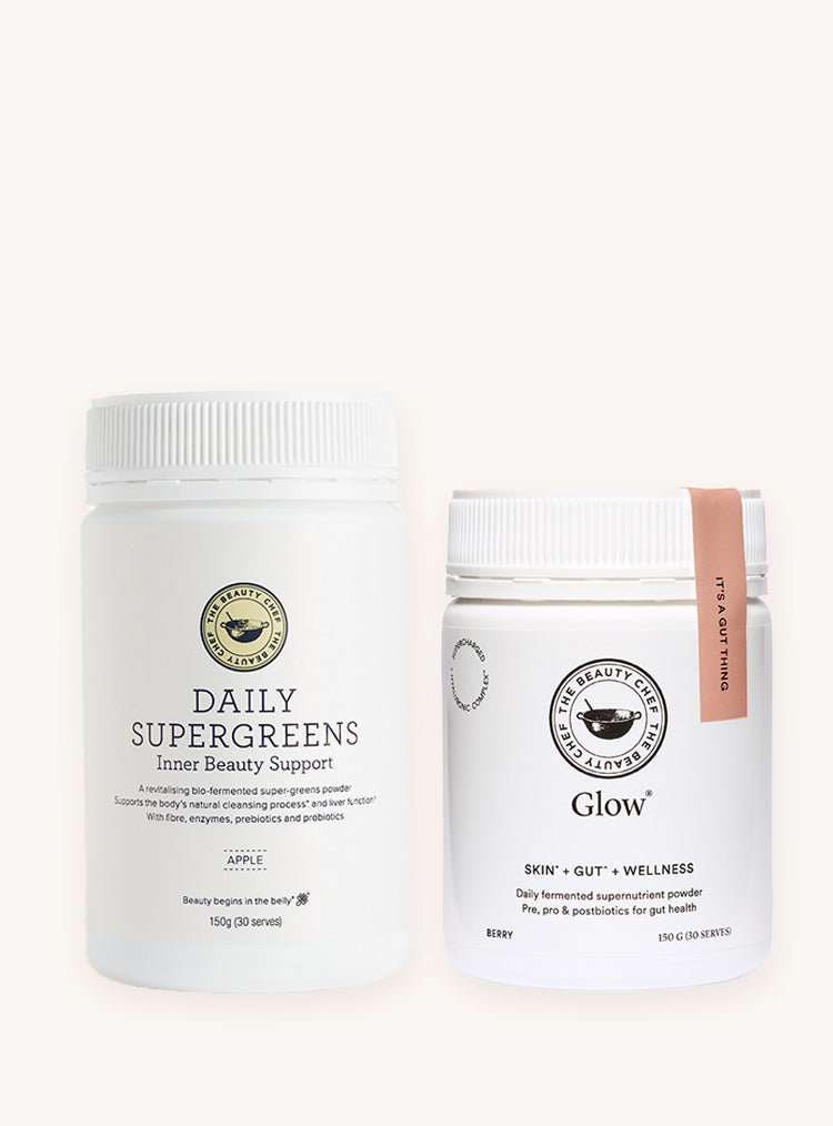 With prebiotics and probiotics for digestive wellbeing and skin health, this bio-fermented duo includes our bestselling beauty powder and super-greens formula.